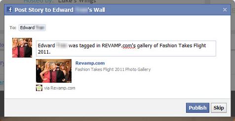 A. It's up to the person who tagged you and 100% optional. But if he/she does choose to publish something to your wall, it would look a little like this: |